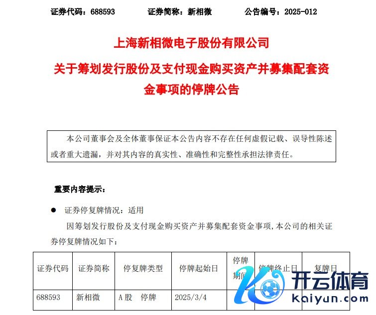 新相微默示,经公司恳求,公司股票已于3月3日开市起停牌,并将于3月4日起不竭停牌,瞻望停牌(累计)时刻不卓著5个交往日。
